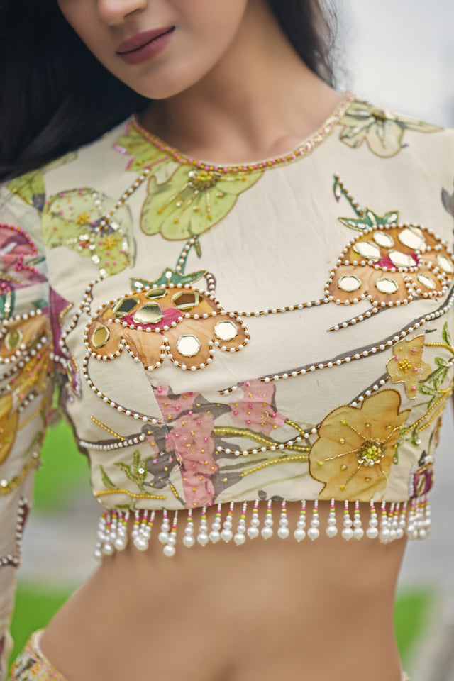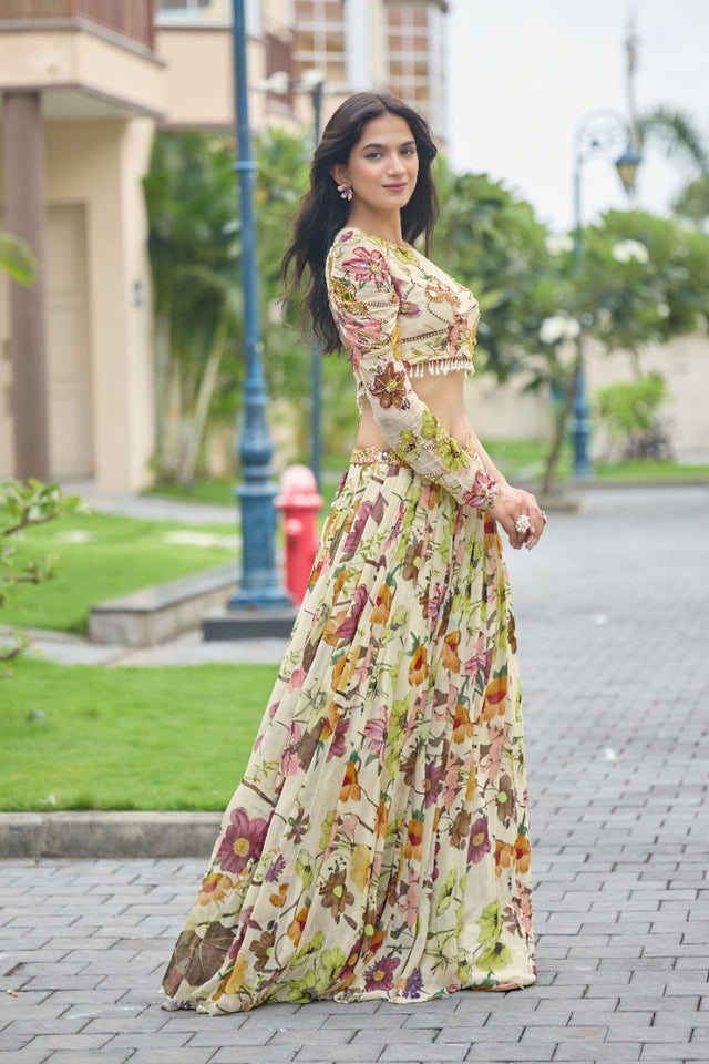 “Draped in elegance and grace in Damosaille's stunning lehenga, each intricate handwork detail telling a story of love and beauty ???? "